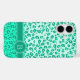 A unique leopard print style monogram case in aqua mint green hues. Personalise this item with your initial. This example reads B. This original unique pattern is designed by Sarah Trett for www.mylittleeden.com