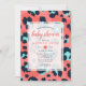 Leopard Animal Print Pink Navy Girl Baby Shower Invitation