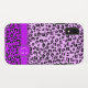 A unique leopard print style monogram case in purple and black hues. Personalise this item with your initial. This example reads G. This original unique pattern is designed by Sarah Trett.