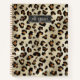 Leopard Animal Print With Black Faux Foil And Name Notebook