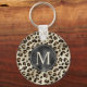 Leopard Animal Print With Black Faux Foil Monogram Key Ring