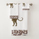 Majestic leopard on a white backdrop with leopard print border. Classic african wildlife theme .