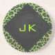 Leopard Black and Green with Monogram Coaster