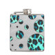 Leopard Black and Teal Print Hip Flask