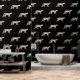 JUMBO SCALE 24 inch pattern repeat.  Moody ebony black grasscloth like texture with a modern vintage style walking leopard, natural botanical illustration in neutral colours. Modern to Classic English or French masculine elegance for bedroom, office or library. Available in multiple scales for large and small spaces. Art by internationally licensed artist and designer, Audrey Jeanne Roberts ©. Audrey Jeanne's artwork is available for licensing through MHS Licensing.