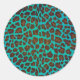 Leopard Brown and Teal Print Classic Round Sticker
