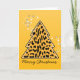 Lovely, bright, modern pattern with animal print christmas tree in yellow and stars. Cute, girly, and trendy Christmas card. Personalise it with your own text/ message/ name.