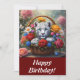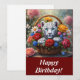 Illustration of white baby leopard cub in a flower basket featured on a 5 x 7 inch flat greeting card
