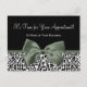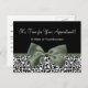 A trendy black and white leopard print hair and beauty salon appointment reminder postcard with an elegant dark green ribbon tied into a stylish bow. Personalise this classy animal print design by adding the name of hairstylist or beautician. Flat printed image, not actual bow.