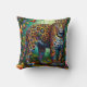 A stunning Throw Pillow featuring a vibrant leopard surrounded by lush vegetation and colourful birds