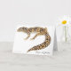 Original illustration of a leopard gecko lizard on a greeting card for reptile fans by designer Carolyn McFann of Two Purring Cats Studio.