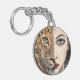 Keychains with Leopard Girl Face Fantasy Painting Art Wild Animal Cheetah Woman - Choose / Add Your Unique Text / Name / Colours / Photo / Image - Make Your Special Gift - Resize and move or remove and add elements / text with Customisation tool ! Painting and Design by MIGNED.
