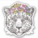 This design features a leopard dressed in a floral halo.