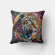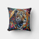 A captivating leopard design fills a Throw Pillow, blending vibrant colours and intricate patterns, perfect for adding a touch of wild elegance to bedroom decor while showcasing artistic flair.