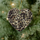 Ornament is shown in a leopard print in a heart shape.