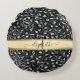 Leopard Pattern Blue Gold Monogram Round Cushion