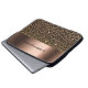 Leopard pattern brown black bronze metallic name laptop sleeve