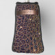 Elegant, glamourous with brown, golden and black leopard pattern, decorated with golden confetti. Personalise and add your first name or family name. A faux bronze coloured band. The name is written with a modern hand lettered style script with swashes. Black letters.