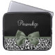 Leopard Print Animal Pattern Dark Green Bow Laptop Sleeve