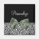 An elegant black and white leopard print pattern featuring a dark green satin bow. Personalise this girly animal print design by adding the name of your favourite girly girl. The bow is a digital image, not an actual ribbon.