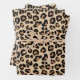 Wrapping paper sheets in a a digital textile print in a textured leopard pattern - leopard spots in black, accented with rust, on a caramel tan background