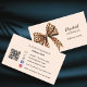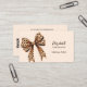 A peach coloured background, decorated with a leopard printed bow. Add your name and the details. Add your web lin/url to the QR code.