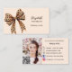 Leopard print bow peach qr code social media photo business card