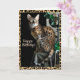 Zoey, a gorgeous Bengal cat from Zee & Zoey’s Cat Chronicles makes for a stunning, wild, and elegant model for this graphic-designed leopard print birthday cat.