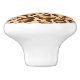 This ceramic cabinet knob is shown in white with a cute leopard print.