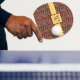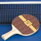 A trendy chevron pattern features rich burgundy red and bright white layers sandwiching layers of fashionable leopard print. A deep brown line separates the chevron columns for a classy final touch. Customise the monogram on this ping pong paddle with your initial to mark it as your own.