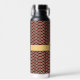 A trendy chevron pattern features rich burgundy red and bright white layers sandwiching layers of fashionable leopard print. A deep brown line separates the chevron columns for a classy final touch. Customise the monogram with your initial to create a water bottle that is uniquely yours.