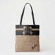 Stylish brown and tan leopard print carry all tote bag, with two big bold black stripes, across the top and graphics of a coordinating bow. Personalise the black script text, on the bottom of the bag, to read what you want. What a great gift idea for her.