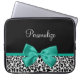 Leopard Print Emerald Green Ribbon Bow Chic Name Laptop Sleeve
