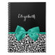 Leopard Print Emerald Green Ribbon Bow Chic Name Notebook