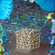 This party favour box is shown in a modern safari leopard print.