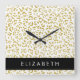 Leopard Print, Gold Leopard, Glitter, Your Name Square Wall Clock