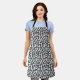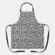 Apron in a digital textile print in a textured leopard pattern - leopard spots in black, accented with silver grey / grey, on a white background