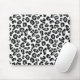 Mouse pad in a digital textile print in a textured leopard pattern - leopard spots in black, accented with silver grey / grey, on a white background