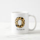 Personalise this custom leopard print lowercase letter "o" coffee mug by adding a name. The options to change the colour of the text for the name, its size, and type of font are available.