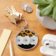 Chic keychain features leopard print embellished with white roses and diamonds.
