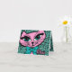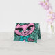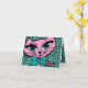 Get a little wild with these fun note cards featuring a blue leopard print background and cute pink kitty in a blue bow. She says MEOW. PinkInkArt original!