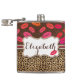 Girly Leopard Skin Print Spot with Lips Kisses in different shades of red, pink, purple, orange and yellow with a dark brown leather background. Ready to personalise and add any name. Just change Elizabeth to your name. Fully customisable. Très chic and elegant.