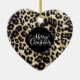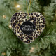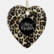 This ceramic ornament is shown in a leopard print in a heart shape.