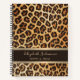 Leopard print pattern Brown Gold foil stripe Name Notebook