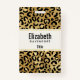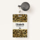 Personalised name badge with a stylish pattern. Exotic black leopard spots on a gold background. Wild yet elegant style.