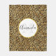 A white coloured circle frame with a faux gold foil borders layered over top with your personalised name and monogram initial inside.
