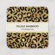 Business cards with a stylish pattern. Exotic black leopard spots on a gold background. Wild yet elegant style. The middle portion of the business card has a cream coloured border, 2 faux gold foil stripes and your personalised text inside.