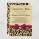 Leopard Print with bright hot pink fuchsia Bow Bachelorette Party Invitation is great for the feminine female girly girl with a flair for fashion and modern style, on her last night out with the girls before the wedding. Shades of gold and black leopard or cheetah wild animal safari theme is chic and classy.