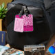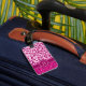 Bright animal print initial monogram luggage tag in pink hues. Customise with your address and initial of your choice. Example reads B on front and customise the reverse of this tag with your name and address details. Smart, stylish and unique great for business trips and holidays. Designed by Sarah Trett.