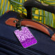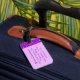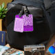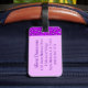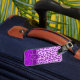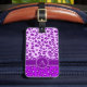 Bright animal print initial monogram luggage tag in bright purple. Customise with your address and initial of your choice. Example reads A on front and customise the reverse of this tag with your name and address details. Smart, stylish and unique great for business trips and holidays. Designed by Sarah Trett.